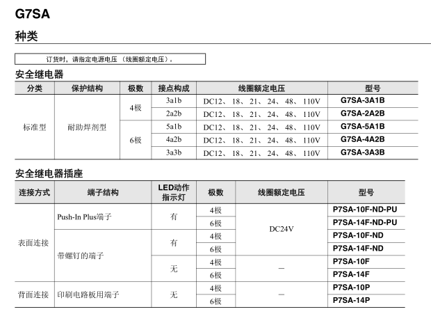 G7SA-4A2B DC24V屬小型纖薄型安全繼電器