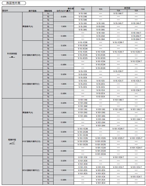 V-15歐姆龍微動開關