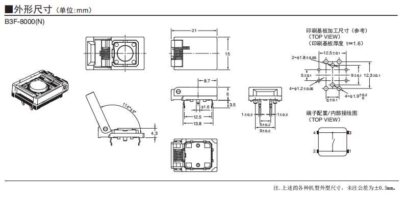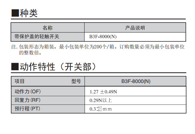 B3F-8000(N) 輕觸式開關(帶保護蓋)