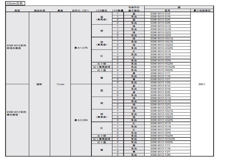 B3W-9000系列歐姆龍輕觸式開關