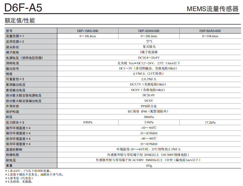 D6F-A5 空氣流量歐姆龍傳感器